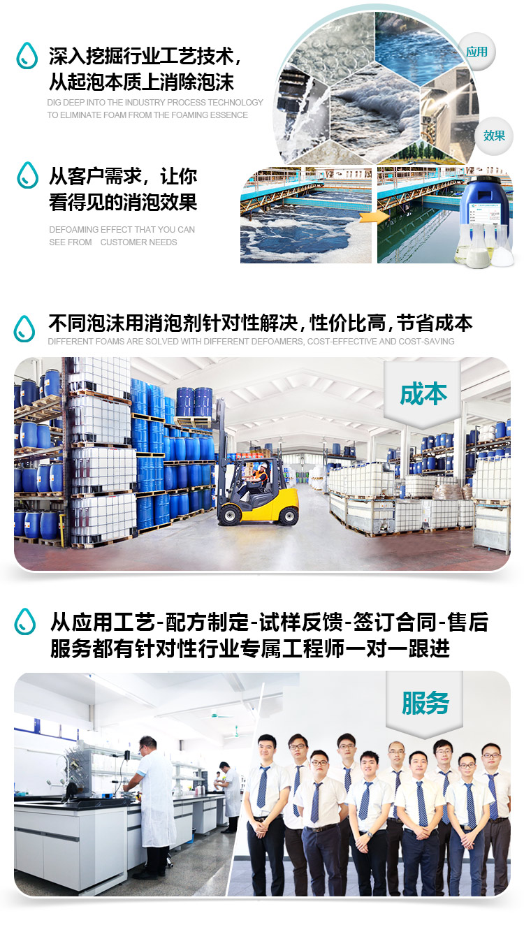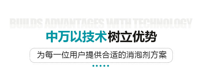 中萬是一家以解決各行業(yè)泡沫難題為使命的企業(yè),專注于各行業(yè)不同工藝的泡沫應(yīng)用研究,擁有8大體系成分產(chǎn)品,近2000個(gè)不同行業(yè)、不同細(xì)分領(lǐng)域工藝的成功應(yīng)用經(jīng)驗(yàn)與解決方案,為您的生產(chǎn)工藝保駕護(hù)航。中萬在化工泡沫領(lǐng)域扮演著重要的角色,從嚴(yán)謹(jǐn)?shù)倪x料到獨(dú)特的應(yīng)用方案,推動(dòng)著整個(gè)消泡劑行業(yè)的優(yōu)化升級(jí),中萬因領(lǐng)先而備受推崇,用技術(shù)成就高效,提方案帶來卓越,讓服務(wù)適應(yīng)市場(chǎng),中萬在消泡劑精益求精的道路上不斷地為客戶謀發(fā)展而開拓創(chuàng)造。